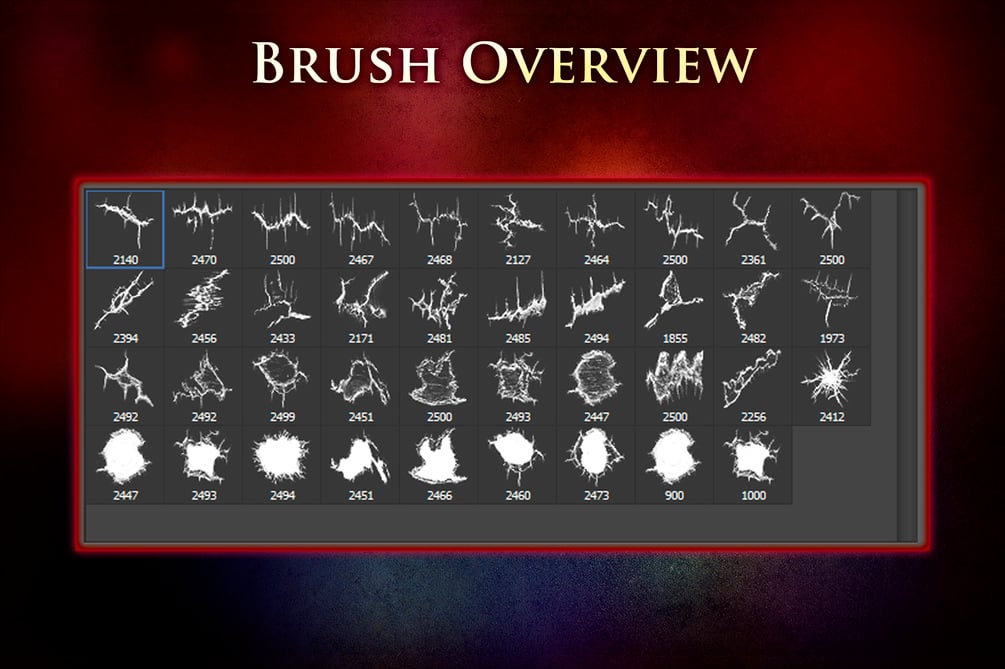 You will get 39 Crack Brushes for Photoshop, Affinity, Procreate plus PNGs
