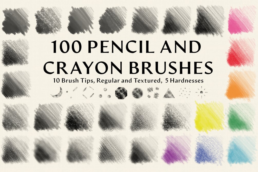 you will get 100 Pencil and Crayon Brushes for Photoshop